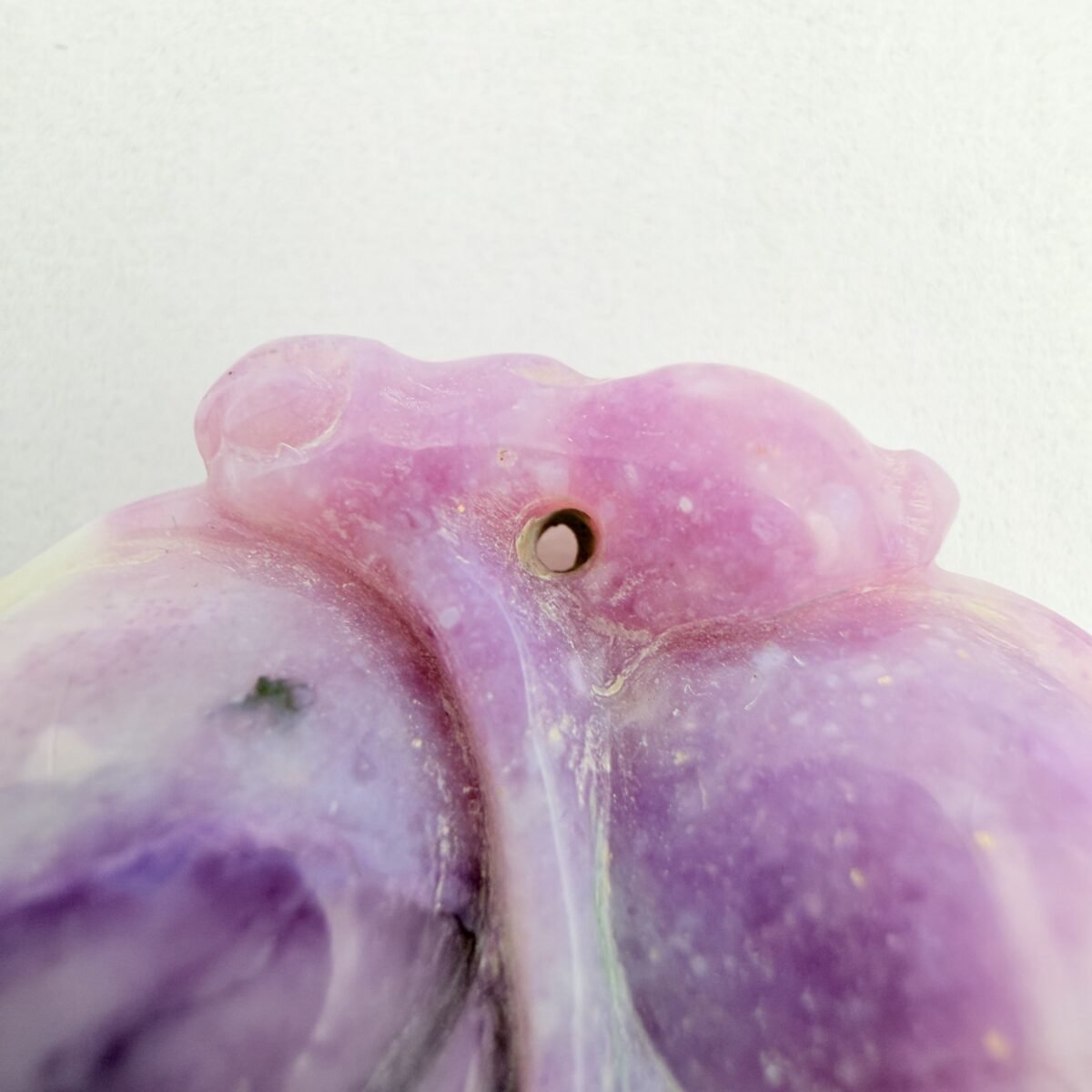 This exquisite pendant is masterfully hand-carved into the shape of a delicate leaf, showcasing the natural beauty of genuine Purple Opal. The stone features a mesmerizing blend of deep violet, lavender, and soft white swirls, mimicking the organic veins of a real leaf.